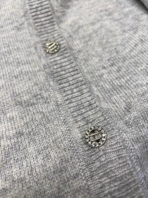 Ruby er en feminin cardigan med vakre knapper som er rene smykker. Jakken er laget i en merinoull-cashmere-blanding som gjør den myk og god å ha på. Den har v-hals og ribbestrikk nederst på ermer og bole