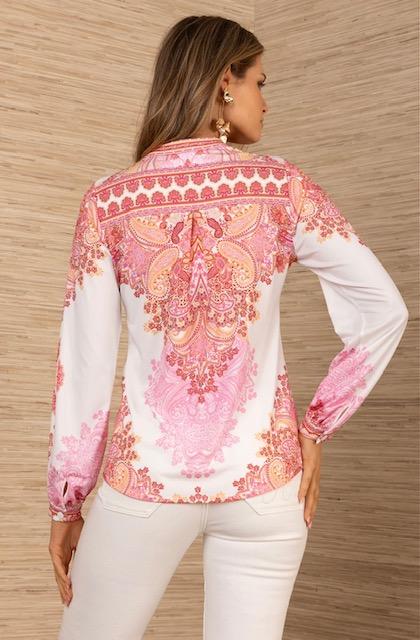 En vakker bluse fra Hale bob med en feminin v-hals og nydelige knapper foran. Blusen har lett a-shape med enkelt legg i ryggen. Blusen krøller ikke