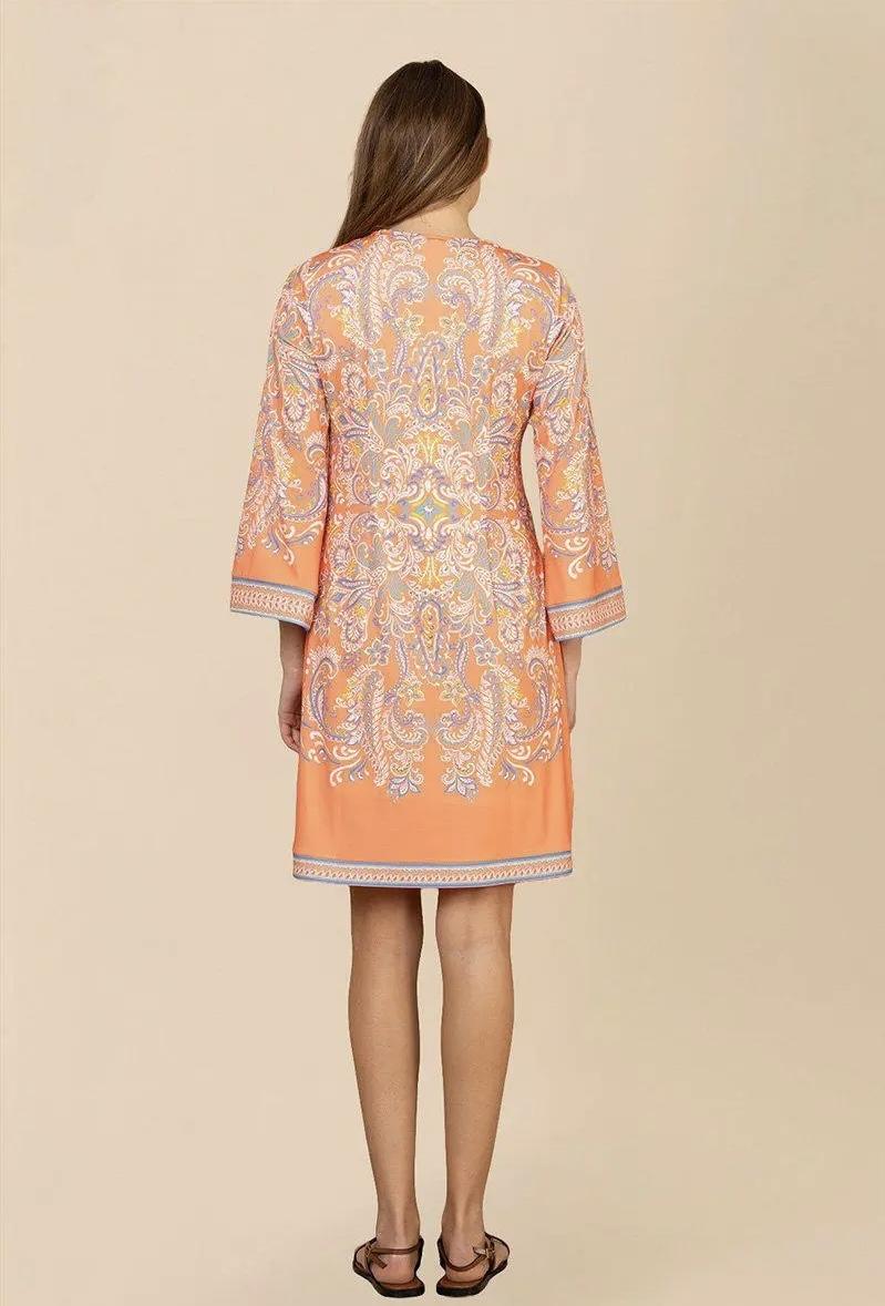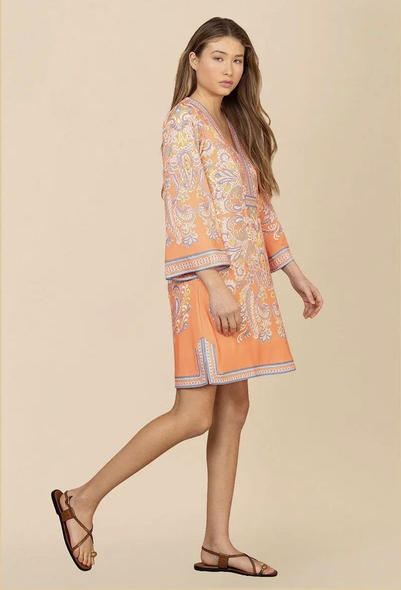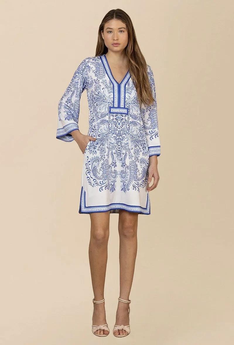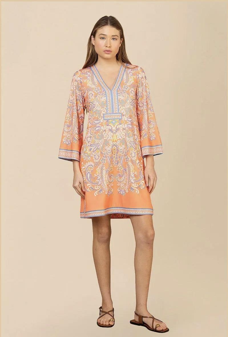 Lekker kjole med kledelig v-hals. Kjolen har trompetermer, lommer i siden og splitt i sidene nederst. Krøller ikke
