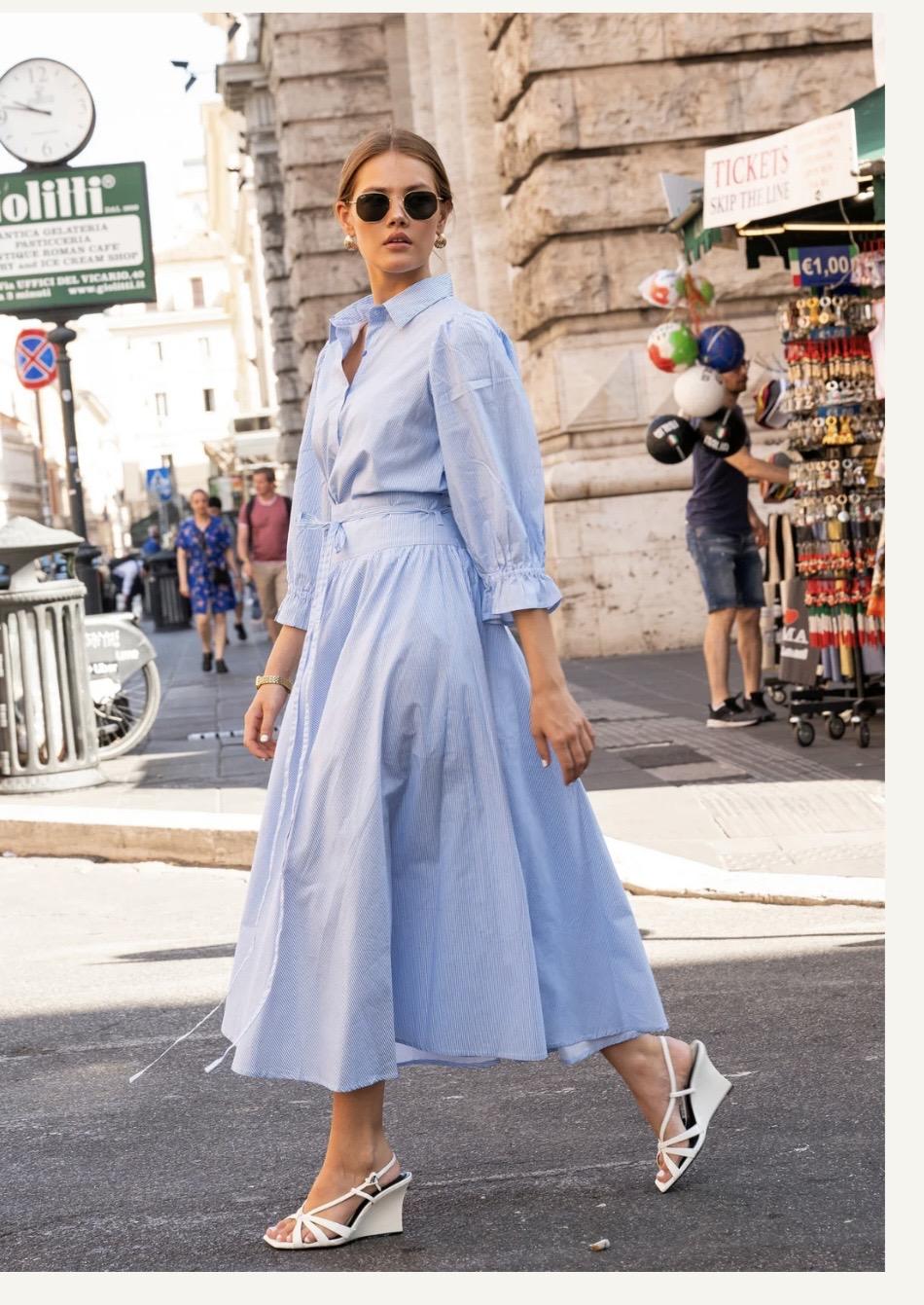 Et tøft midi-langt skjørt i poplinkvalitet. Skjørtet har markert midje med smock bak. Det har glidelås i siden. Skjørtet er volumiøst og har deilige lommer i sidene